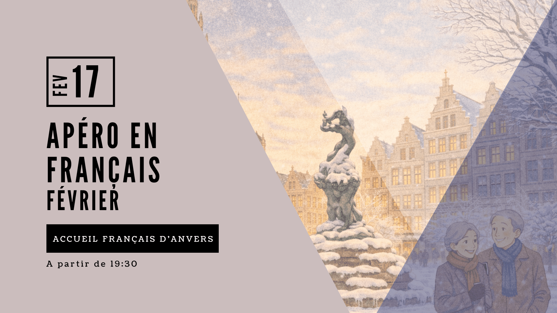 Bar Salon - Dageraadplaats 2, 2018 Antwerpen Dageraadplaats 2, Antwerpen, BelgiumEnvie de rencontrer de nouvelles têtes et de passer une soirée conviviale à Anvers ?Rejoignez-nous pour notre apéritif en français, un moment chaleureux pour tous ceux qui souhaitent échanger, rire et partager un verre au sein de la communauté francophone d’Anvers 🥂 Que vous soyez nouvel arrivant ou installé depuis longtemps, seul, en couple ou […]